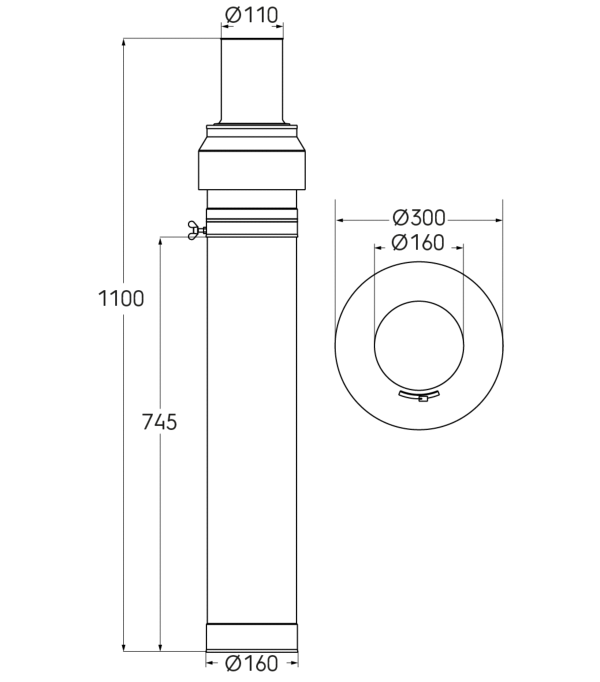 Kit terminal Rolux 3CEp Condensation D110/160mm inox